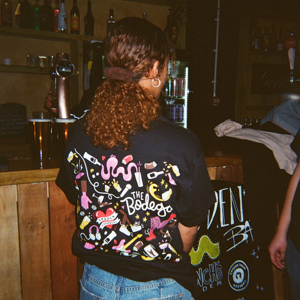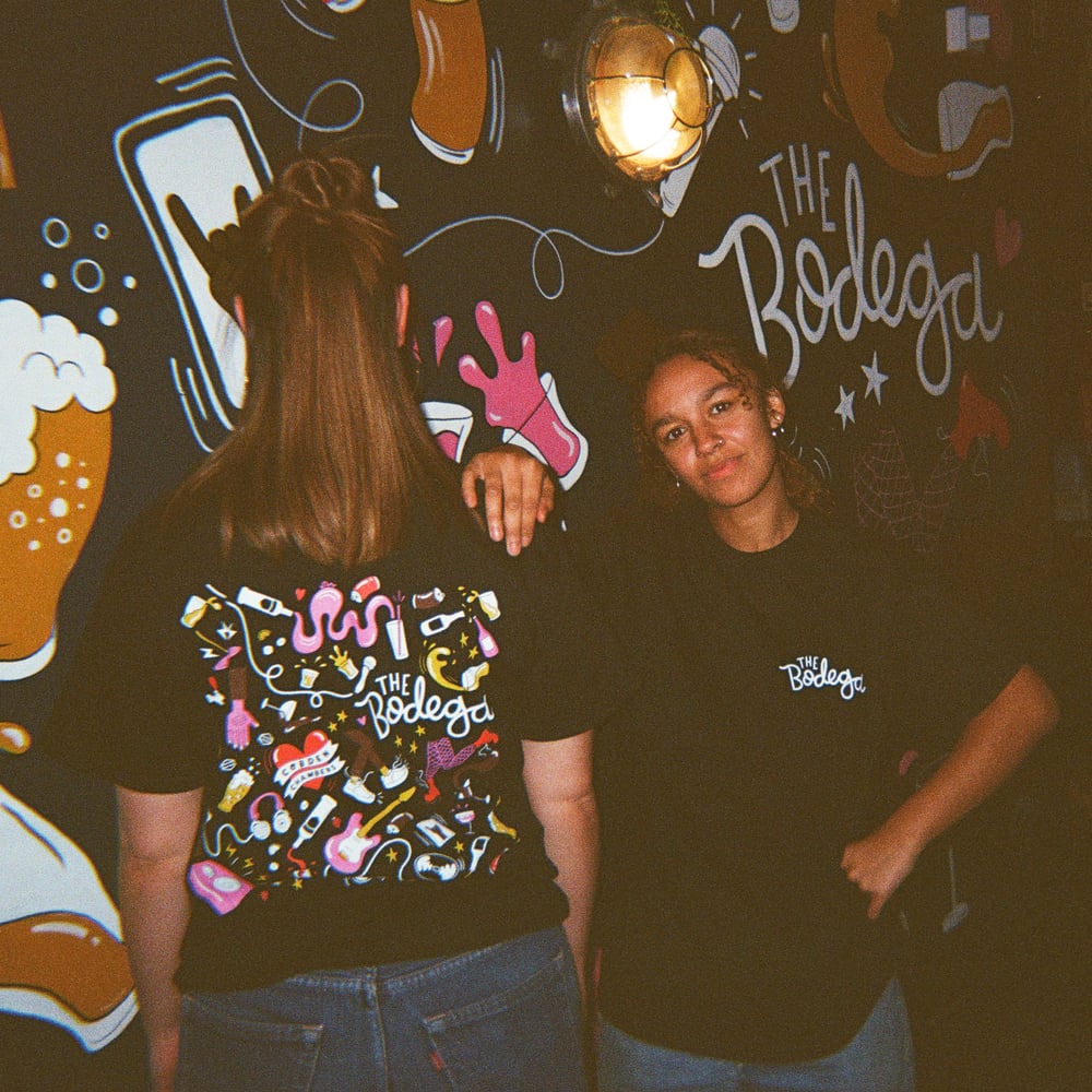 New in stock, our Cobden mural shirt. Featuring white "The Bodega" print on front, with coloured mural design on reverse.